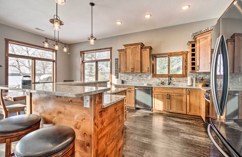 Your next peaceful lake retreat awaits with a stay at this charming 5-bedroom, 4-bathroom Siren vacation rental cabin. Boasting stunning lake views, ample outdoor seating, an enclosed patio area, and a separate bunk room, the ‘Lazy Bear Lodge’ has everything you’ll need. Rent the on-site pontoon boat and spend the day on the lake, hike the trails at St. Croix State Park, or practice your swing at Siren National Golf Club. Bring days to a close while sharing drinks with friends by the fire pit.