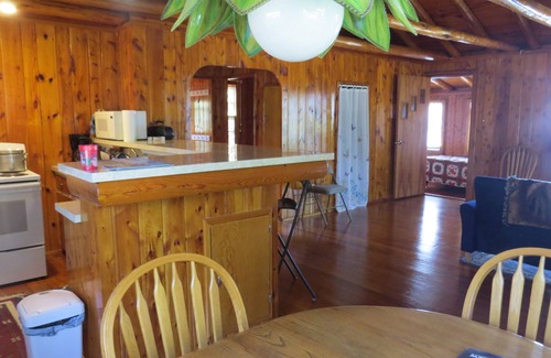 This home is a beautiful log cabin cottage. It sits on approximately 150 feet of lake frontage. The lake has a sandy bottom and is shallow a long way out, which makes it nice for wading and also the sun warms the shallow water early in the year. It is completely furnished. You will have access to 2 kayaks, gas grill, DVD's and player, books, puzzle and games. This is a wonderful place to relax and enjoy the beach and catch nightly sunsets in the privacy of your own home. You may decide to never leave the hammock. Sleeping arrangements are as follows: