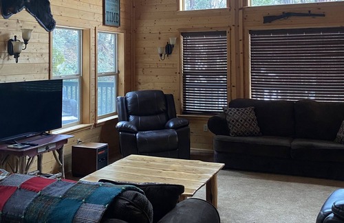 Additional amenities: There is WIFI but it is not the best you can operate your phone, google search, e-mail, make wifi calls and text messages, there is a total 5 TV's and 5 DVD players, there is about 60 movies that you can watch located in the upstairs loft, in the wood chest in the loft there is some bored games, cards, and dice. The living room fireplace is gas but there is additional heaters for rooms and fans if needed in hallway closet.