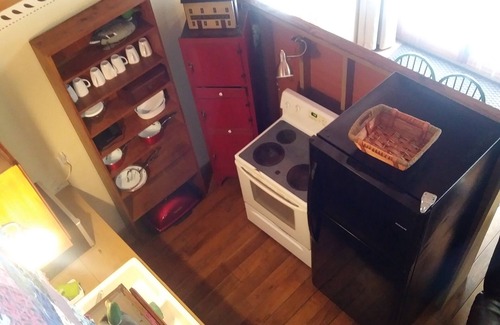 Located on our 10-acre mini-farm this spacious cabin (1100 sq feet) was once Mamaw's home. The cabin sleeps 2 private and 4 more semi-private, accommodating 6 people total. Built specifically for Mamaw in a primitive country style, it features a spacious Loft bedroom that sleeps 3, an additional small bedroom that sleeps 1 and a Master Bedroom with Queen- size Sleep Number Bed. The rustic country interior features extensive wood from various trees harvested off of the farm, cedar, poplar, pine and oak. Fully functional kitchen and bath including washer/dryer. A rear deck overlooks woods and pasture and depending on the time of year you may hear our small creek rushing at the bottom of the hill or drop a line off the floating deck of our farm pond. There is also an outdoor fire-pit to enjoy on those cooler nights. Walk our woods, wade our creek, meet our cows or feed our chickens. Enjoy some "Goat Therapy" they are always willing to listen and have an answer for your every question. LOL. Relaxing small farm living is here to enjoy and if the chickens are laying there will be fresh eggs for breakfast too.