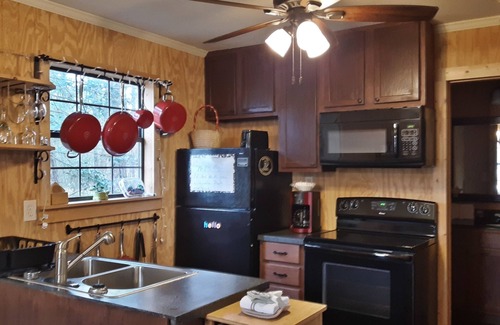 Come and relax from your daily routines. Our cabin has an outdoor fire pit perfect for roasting marshmallows and hot dogs with family and friends. The country sky is clear and full of stars. Cabin is stocked with board games, books, and toys for children. Also this cabin is located on a 50 acre working farm with cows, pigs, sheep, goat, and chickens. Onsite Recreation.