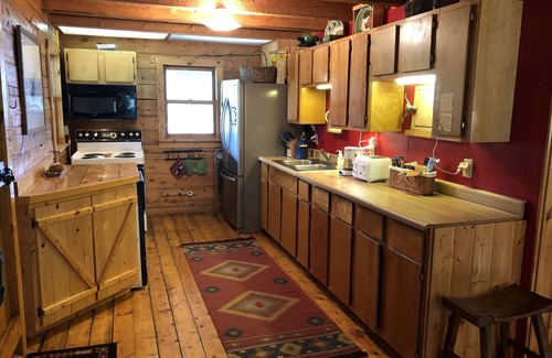 This cozy cabin with Teton views is the perfect place for winter skiers, summer hikers, and fall hunters! This is a true log cabin built in 1986. It is not a fine home or resort, but it is clean and comfortable. Enjoy a two bedroom, two bathroom cabin with a wood burning stove, full kitchen, and spacious living room as your Jackson Hole, Grand Teton National Park, and Yellowstone National Park home base. It is 40 miles to the southern entrance of Yellowstone National Park and 12 miles to the northern entrance of Grand Teton National Park. Turpin Meadows guest ranch, three miles down the road, offers year round activities (snowmobiling, cross country skiing, horseback riding, mountain biking, etc) and nearby Togwotee Pass is the area's most popular snowmobiling destination. This cabin accommodates four in the two bedrooms with an additional sleeper couch in the living room. You will find a fully stocked kitchen, smart TV, WIFI, well stocked games, and an inviting porch with rocking chairs waiting for you to enjoy beautiful Teton sunsets. In the summer and fall enjoy the hiking and biking trails out the back door and the Buffalo Fork River that flows through the backyard. Horseback riding, fly-fishing, and other summer activities are available within three miles of the cabin. In the winter months, enjoy world class skiing at Jackson Hole Mountain resort (35 miles in summer, 50 in winter due to seasonal road closures), snowmobiling, snowshoeing, and dogsledding. Hunters will love to call this cabin "home" in the fall. The fully stocked kitchen is ready for meal preparation, or enjoy nearby restaurants a few miles down the road. Whatever the season, enjoy your stay in the heart of the Tetons.