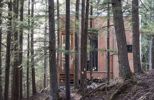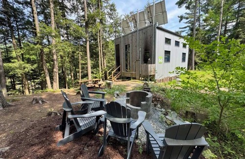 This cabin, on the backside of Mont-Orford Park, is situated on the immense 1000-acre Vertendre forest playground. This protected, private territory offers 2 lakes and a mountain where you can enjoy a wide range of outdoor activities right on the site. A perfect balance between ecology, innovation, and comfort.