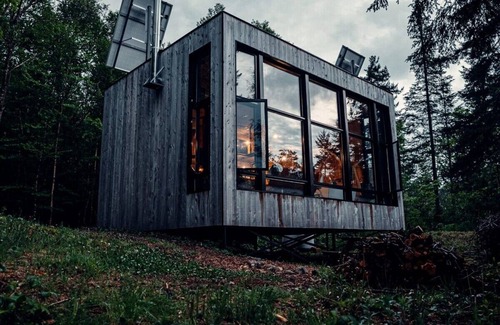This cabin, on the backside of Mont-Orford Park, is situated on the immense 1000-acre Vertendre forest playground. This protected, private territory offers 2 lakes and a mountain where you can enjoy a wide range of outdoor activities right on the site. A perfect balance between ecology, innovation, and comfort.