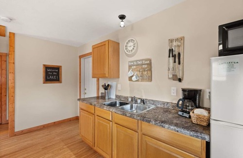 1 bedroom plus sleeper sofa in living room and kitchenette. Access to fish cleaning station, boat (ample parking) charging available upon request. Community firepit. Ask about adjoining cabin for groups. This is a group of 10 cabins/duplex. Fantastic place for reunions/large groups!