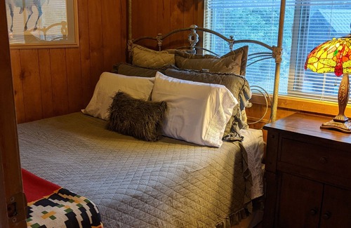 Our beautiful cedar cabins feature 2 bedrooms, with a queen bed in one room and a bunk bed (full size bed on the bottom, twin bed on top) in the second room. Full closets with plenty of drawers for your belongings ensure a clutter-free stay. Enjoy entertainment with a flat-screen TV, Direct TV, and Wi-Fi in the living area, complete with a drop-down Spanish tiled table and chairs for dining. The kitchen is fully equipped with a dishwasher, microwave, cook top, coffee maker, and full refrigerator. Just bring your coffee and food. We provide all the essentials: dishes, silverware, utensils, cookware, glasses, coffee cups, and paper towels. Each cabin boasts an outdoor propane BBQ for your grilling pleasure, along with dish soap, dishwasher soap, microbial cleaning supplies, and dish towels.The bathroom features a shower, and all your bath towels are provided. Shaving creme, razors, body wash, shampoo & conditioner are provided, just bring your toiletries, and blow dryer. Stay safe with linens and laundry items washed at 140 degrees with Lysol Laundry Sanitizer. Are you sensitive to laundry soap or other cleaning products? No worries, just mention it and we'll wash with special hypoallergenic laundry soap for sensitive skin. Stay comfortable year-round with climate-controlled forced air conditioning and heating. For electric vehicle enthusiasts, we offer convenient 110 EV charging stations at each cabin (please bring your own charging cord). Rest assured, Bryson Hesperia Resort offers easy access without any locked gates, intimidating guard shacks, or challenging water crossings to worry about. Whether you arrive during the day or in the tranquil night, finding us is a breeze.Additionally, our private off-street parking is all-weather and paved, providing a secure and convenient spot to keep an eye on all your belongings, including toys, boats, and vehicles. Your peace of mind and comfort are our top priorities during your stay with us.