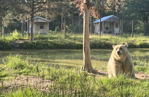 Unique Rustic Cabins at Grizzly Ranch! Located it in quiet Geneva County! Enjoy nature while watching the bears of GRBB Rescue play in their pond! We are located on the Choctawhatchee River, enjoy a canoe ride or kayak. Fishing is available in the ponds on property or on the river! Get to experience the Wild of the Grizzlies from your own porch.
