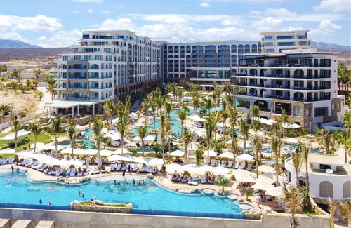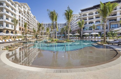 New Villa La Valencia resort has the longest lazy river in Cabo, an infinity pool facing the sea, 4 Jacuzzis, a wellness and 24-hour fitness center with a hydrotherapy circuit, an onsite market/deli, Kids' Club, and a variety of restaurants from which to choose. Take advantage of 18 holes of golf, a beach bar, and a poolside bar.