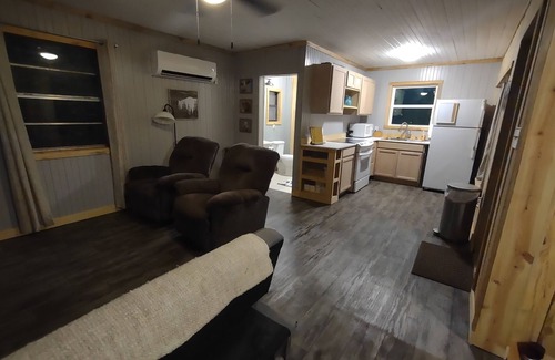Additional notes on seclusion: This is the only rental on the 2-acre property. There are only two neighbors in the area, and they are separated by a lot of trees so your part of the river will feel secluded and private. There is a clean ranch across the paved road that hosts beautiful Brahmas. There is no development across the river giving you more shoreline and woods to explore. You may hear a lumber processing plant across the river in the distance through the trees and occasionally kayakers will treat you to their favorite tunes as they float by. The river is usually very quiet, allowing you to be alone on the water most days between September and May. However, weekends, holidays, and warm summer days sometimes bring a lot of tubers and kayakers to the water during the day. It's usually quiet again in the evenings even on summer days.
