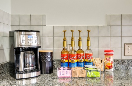 KITCHEN: Stainless steel appliances, dishwasher, coffee bar w/ drip coffee maker, blender, toaster, Crockpot, dishware & flatware, cooking basics & spices