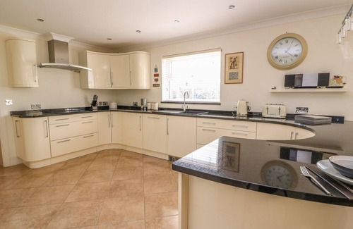 Cadwgan is a detached property resting on the outskirts of Aberporth. It houses five bedrooms, comprising of a king-size double with an en-suite, a king-size double, a double, a second-floor twin and a second-floor king-size. There is also a family bathroom with a bath, separate walk-in shower, basin and WC, in addition to a ground-floor shower room with a walk-in shower, basin and WC. Completing the interior is an open-plan living room with a sitting area, a dining area and a kitchen area, a separate sitting room, a utility and a conservatory. To the outside you will find off-road parking for 10 cars and a garden with a hot tub. No Stag/hen or similar, no groups under 25 years of age. Cadwgan is superb base for a family gathering.