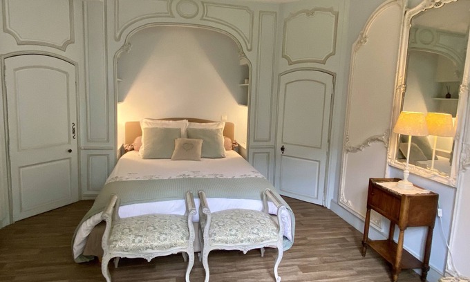 Right in the heart of the historic center of Caen (between Place Saint-Sauveur and Château ducal), a charming apartment, on the ground floor of an 18th century mansion. Each room is equipped with French doors giving access to the wooded garden and its terrace.