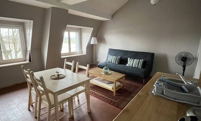 Self-catering loft apartment with one quiet and cosy bedroom with a 160cm bed, plus optional sofabed in lounge area along with a fully-equipped kitchenette. Bathroom with walk-in shower, heated towel rail, WC. Double glazed, with magnificent views over the Loire. All our rooms are strictly non-smoking.