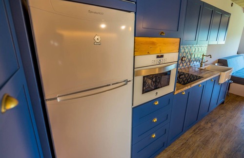 We have decorated the accommodation with cornflower color (as the houses of the Pyrenees were formerly painted to protect them from evil) and with various elements from the last century.