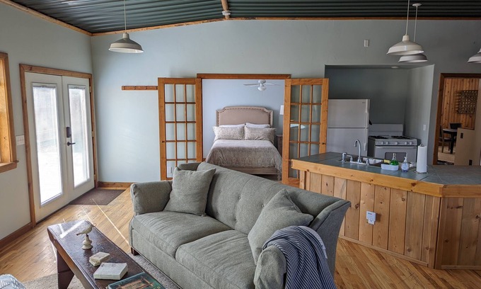This unit is part of a duplex. Another short-term, rental apartment is right next door. Guests will need to be considerate of any neighbors and keep noise levels to a minimum during nighttime hours. Both units in the duplex are available to rent. Just search for "Annie Oakley's Outpost" for the other unit. The units have a shared interior door. Normally locked from both sides, this door can be opened by the host to allow guests to pass-through if you have a larger party. This is a great option for two couples or a family. Please check availability for each unit before booking. Additional discount is available if you book both units. Please contact the host to inquire.