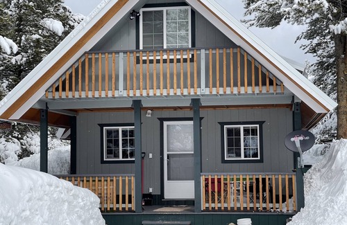Our cozy cottage is the perfect mountain getaway, with plenty of space for small families. It features two comfortable queen beds, a twin log bed, twin log bunk beds, and a pull-out sofa bed. The setting is simply enchanting, nestled on just under a quarter acre in a charming neighborhood on the edge of the national forest. You're only a block away from the river with a convenient boat launch.