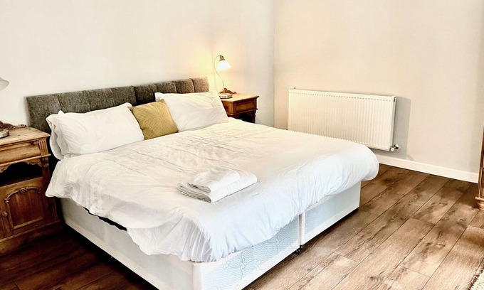 Expect modern interiors, with a few beautiful period pieces as is our house style here at Northern Stays. Our large four poster room is very popular with guests.The property has an enclosed back garden and plenty of space for 'off road 'parking .Expect Northern Stays vibe: huge properties; a games room; en-suite bathrooms and smart TV's in each bedroom; outdoor seated area and stylish interiors .