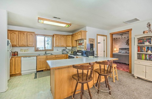 Escape to the Idaho countryside and experience a rejuvenating retreat at this 3-bedroom, 2-bath Caldwell vacation rental! Sitting on 30 acres of secluded land 40 minutes from Boise, this charming home is perfect for families and friends seeking a peaceful escape from monotonous city life. Spend your days sipping on local wines at some of the region’s best vineyards. Afterward, return home for a delicious meal in the full kitchen and a peaceful stroll around the pond.
