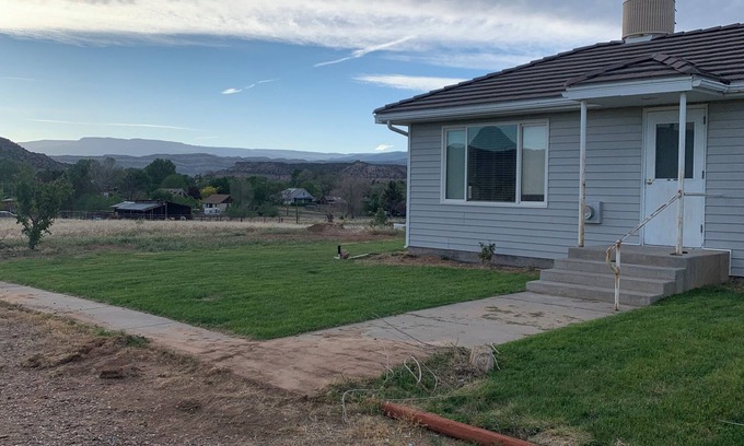 Comfortable and clean home where you can spend your time after exploring the beautiful surroundings, or as a quick stop between Bryce Canyon and Capital Reef. This studio style home includes a bathroom with a shower and a laundry with washer and dryer. The king size bed, Sofa, dining set, wifi, and kitchen where you can prepare simple meals will make your stay comfortable and convenient. The patio provides a great setting to watch the sunset, bbq, or sit near the fire and enjoy the evening.