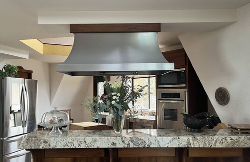 - Luxurious Amenities: Features like a Japanese soaking cedar tub, gourmet kitchen with stainless appliances, and high ceilings with stunning artwork create an upscale, romantic atmosphere for your wedding stay.