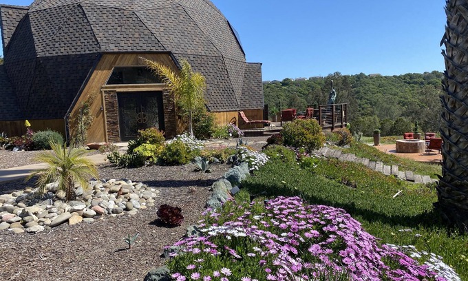 Welcome to California Dreamin' Upscale Architectural Marvel, a stunning geodesic dome nestled atop a serene 3-acre hilltop in Arroyo Grande, California. This majestic property offers an idyllic setting for couples looking to celebrate their love with breathtaking ocean views and unmatched tranquility, making it the ultimate wedding accommodation. With expansive indoor and outdoor spaces designed for both intimate ceremonies and grand receptions, this architectural gem is sure to inspire romance and lasting memories.
