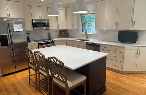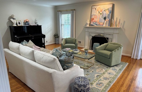 Welcome Derby Fans! Located just 18 minutes away from Churchill Downs, and less than 5 minutes from grocery, unique restaurants and a multiple liquor stores, this home is convenient and has it all! This 4 Bedroom, 2.5 Bath home is perfect for a nice, long weekend. This home comes with an updated kitchen, stainless steel appliances, quartz countertops, that also has ample storage. A powder room off the kitchen, and casual and formal dining and seating areas. Multiple eating areas between the kitchen as well as the dining room. Off the family room, is a dry bar with stainless steel barrel ice machine. Located off the family room as a set of doors, leading to patio with Weber grill. Upstairs, you’ll find the Master Bedroom which has a king mattress with a Smart TV. Off the hallway is the Master Bathroom, including a glass shower. Three additional bedrooms upstairs, with one king and the others each have a queen mattress. Additional full bathroom found upstairs, with Serena and Lily wallcoverings, recently updated. In the unfinished basement, you’ll find a set of brand new (purchased May ’24) washer and dryers for your use. House also comes with a brand new HVAC unit, so rest assured, your stay will be a comfortable one. We do have a Ring video doorbell on our front porch. Plenty or parking, as this home has a circular driveway in front, as well as a full length driveway on side of home that leads to two car garage. This home is 1 mile off the 264 East expressway.