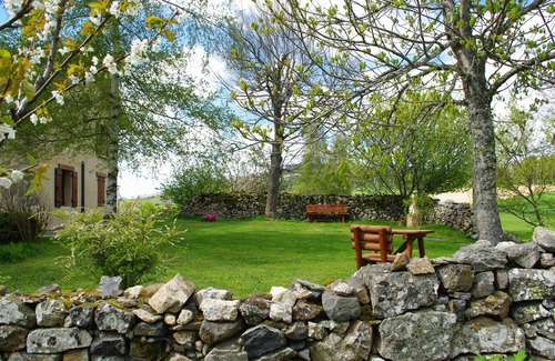 In a green environment, 950 meters above sea level, we have restored this old farm in keeping his soul him. We offer to rent the adjoining part of it where we live: a large living room with sitting by the fireplace, a beautiful table for convivial meals, a modern kitchen and very equipped (washing machine, dishwasher, oven, microwave -ondes ...), clean and comfortable rooms (one with bed of 160), a library and video room, a large heated pool and chlorine-free from June to September depending on the weather, a terrace slate , games for children, bowling, bicycles available, tips for hiking and visits to the region ... everything comes together for a stay of rest and fun with family or friends. For the comfort and quiet of all, the house is rented for 8 people or less ...!