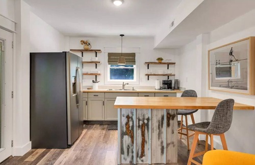 Contemporary decor with a splash of fun! This unique space is the perfect couples getaway. Located next to an awesome nature walk yet less than a mile to the Atlantic. Private backyard for BBQ's and large enclosed outdoor shower to cool off . Conveniently located to restaurants, golf course, entertainment, and shopping.