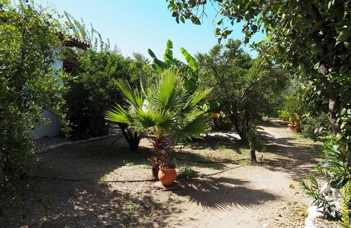 The simply furnished semi-detached house NIKOS is immersed in lush vegetation with banana plants and fruit trees. The small stand-up kitchen is adjoining to the 2 bedrooms and 2 bath rooms. There is direct access from the kitchen and one bedroom to the roofed terrace. A barbecue is available on demand.