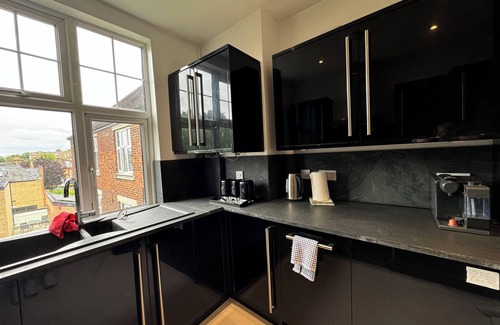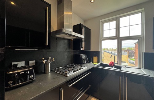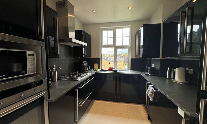 Spacious and modern, this sleek and fully equipped kitchen has everything you need for your stay. Whether you're whipping up a simple snack or indulging in a culinary masterpiece, this space is fitted with a fridge, freezer, oven and the added convenience of a dishwasher and washing machine, allowing you to make the most of your time exploring the city - not washing up!