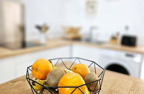 - An open kitchen with all the necessary equipment, fridge-freezer, oven, induction hob, microwave, coffee maker, dishwasher, and washing machine