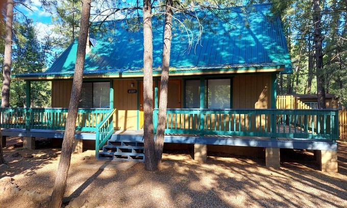 Great two bedroom two bath and a large living room cabin in a quiet area of Pinetop Lakes Country Club. The house features a large living area and dining area and a wrap-around deck to enjoy outdoor times in the perfect weather. The cabin was just remodeled from the ground up. Sleeps 4 people in two bedrooms a king and a queen bed. Come and enjoy the best area of Pinetop.