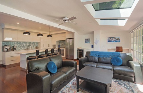 Nestled amidst its own enchanting English gardens, this holiday home is set in a vast private park-like setting. Positioned on the elevated southern slopes of the city, the property basks in the warmth of the sun all day, providing a perfect setting for relaxation.