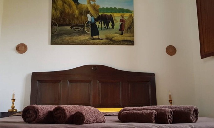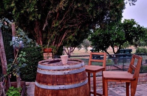 Delightful family room characterized by the warm embrace of wood. You have a private entrance and a spacious patio with a panoramic corner, ideal for relaxing and admiring the colors of nature: the green of the fields, the blue of the sky, and the vastness of the stars. It is a perfect place to experience moments of tranquility and enjoy a welcoming and charming atmosphere, surrounded by the beauty of the landscape. The accommodation offers comfort and privacy, making your stay pleasant for both families and groups of friends.