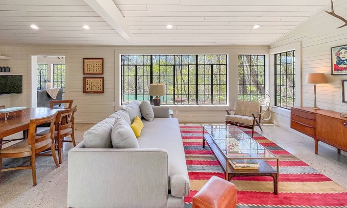 This property is located outside the quintessential postage stamp-size Ozark town of Pangburn, Arkansas. You're 15 - 20 minutes from Heber Springs (ample dining and shopping) and Greers Ferry Lake - an ideal place to rent a pontoon boat for the day or take everyone out swimming at the public sandy beach and jump rocks.