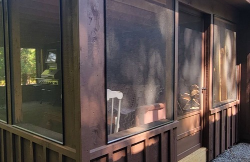 Cozy cabin. Outdoor fire pits, Giant screened in porch where I spend most of my time when there in the summer. 3 Beds, Bedroom downstairs with a Queen connects to the bathroom and upstairs there is another Queen and a full size bed.