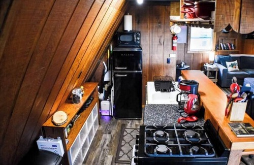 The fully stocked kitchen is equipped with a propane oven/stove, fridge, freezer, and everything else you could need, making meal preparation a breeze. Plus delicious local brewed Rainshadow coffee is provided. The cabin features a 3/4 bathroom with modern amenities.