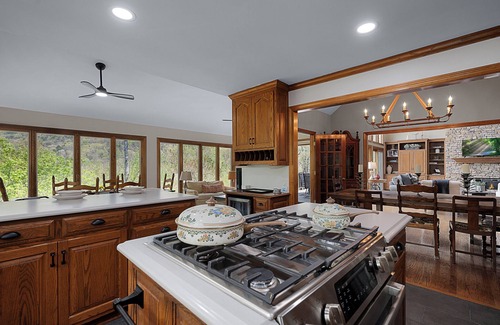 - Scenic Outdoor Deck: A large outdoor deck beckons for al fresco dining and entertaining, complemented by breathtaking forest and mountain views that provide a beautiful backdrop for your special moments.