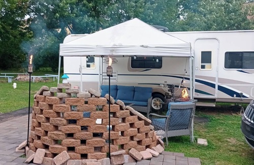 Get cozy and settle into comfy RV/24 ft camper located two minutes off I-70 in Terre Haute Indiana within city limits. Enjoy a night or two of blissful snoozing on 1/3 private well-lit lot within city limits. Two-minute walk to dining, and more.