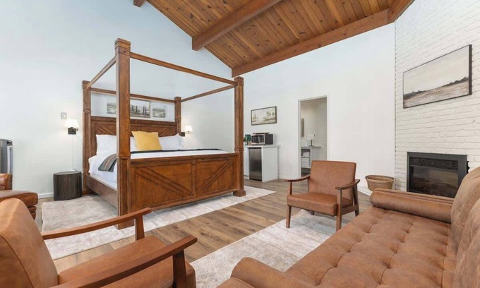 Stepping into room 10 located on the second floor! You're welcomed by a spacious sanctuary where with a king memory foam bed promising restful nights amidst the embrace of mountain tranquility. The room boasts modern comforts, including a microwave, keurig, and a rejuvenating shower to wash away the day's adventures.