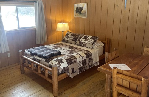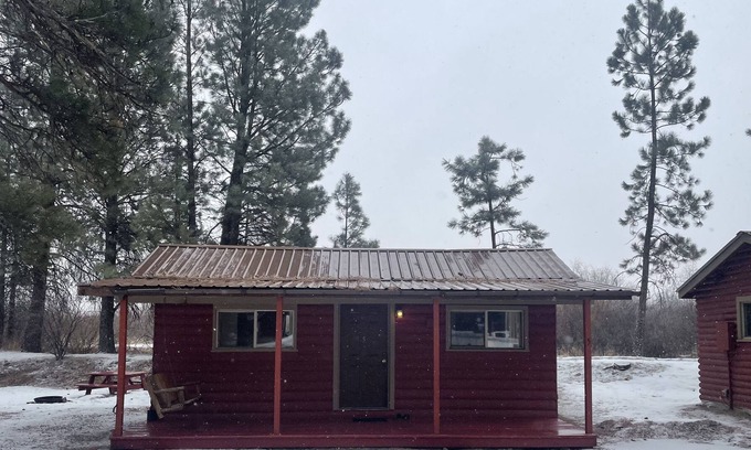 You’ll enjoy this two room cottage - you’ll have a kitchenette with a stove / oven , mini fridge , sink , coffee maker , microwave & stocked with dishes . You’ll have a full bed , a separate bedroom with a bunk bed and a full bath room . Outside , you’ll enjoy the Bitterroot River being directly behind the cabin ! We have nostalgic mini golf , fish feeding pond , a fully stocked general store & 24/7 on site management. 2 pets are allowed with a fee -and there is an extra guest fee over 2 guests . You can enjoy a campfire with your fire pit , picnic table or relax in your porch swing .