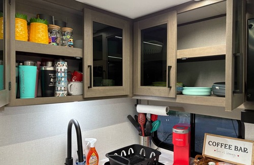 Stay in a modern camper near many attractions like the bike trail, private ponds, the Mississippi river, Perrot State Park, and more.