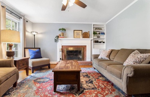 Campbell Cottage is situated just north of campus on a quiet road in adorable Lillington, NC. This older home has a beautiful balance of updates and charm, from high speed internet to original hardwood floors. Two cozy living rooms, a dining room, four comfortable bedrooms, a screen porch, and a well equipped kitchen await your stay.