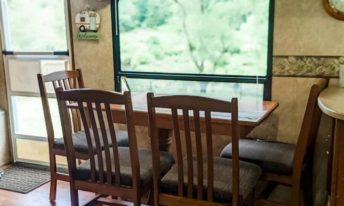 If you're looking for the richness of the outdoors and a private creek view camp but want all the comforts of a warm cozy bed, hot shower and a stocked kitchen, look no further. This home will give you a taste of camping with the comforts of home. This clean and comfortable camper is located in the rural countryside on a family farm where you can enjoy beautiful views of grazing farm animals, a creek and maybe some wildlife. The many attractions of Floyd County are close by.