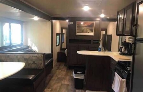 Reconnect with nature at this unforgettable escape. Quiet place near Kentucky lake to relax and enjoy the outdoor experience. Comfortable and modern camper is perfect place to stay while exploring The Land Between the Lakes or enjoying Kentucky lake. Camper is available all year round. In the summer you can spend time at the swimming pool, or take a walk on our trail that leads to beautiful Kentucky lake with breathtaking view! Our camper is located in a small and quiet campground, where you can relax and unwind. You will be surrounded by many different kinds of trees, shrubs, flowers and wildlife. Every morning you will wake up listening birds sing and evening is a frog's symphony time. You may also have an unexpected visitor - a squirrel likes to have her favorite breakfast (pig nuts) on the porch. The camper has a comfortable queen bed in the master bedroom, living room with sofa bed and dining table, full kitchen, bathroom and two double beds. You may spend most of your time on large porch which is attached to the camper. It has dining and coffee table with chairs. Most of the time, camper is decorated with seasonal plants. We offer fire wood, ice and country fresh eggs for additional charge. Near by, where the camper is located you can find a picnic area and pavilion with a gas grill, fire ring and plenty of fire wood. Swimming pool is open on sunny days from Memorial weekend until Labor day holiday. Fisherman can find a fish cleaning station and beautiful pond with a lots of fish and turtles. Please give as a call or text if any assistance needed during your stay Camper is not even 3/4 mile from the lake. Restaurants, gas station, Dollar general, Old Country store with delicious ice cream, coffee, home made jars of jams and more is within one mile driving distance. The Land Between the Lakes offers Elk and Bison Prairie, many hiking and biking trails, fishing, boat ramps, Turkey Bay off road vehicle trails and more. Enjoy the outdoors, relax and recharge. Take a brake from technology, we currently don't offer TV or Wi-Fi. Games are available per request, no additional charge. You can also rent stand up paddle board or bring boat, golf cart or ATV - we have plenty parking space. Be aware of insect and ticks.