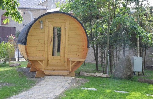 Camping Barrel Bunge 1 with Shared Garden and Wi-Fi | RV Rental in Krostitz