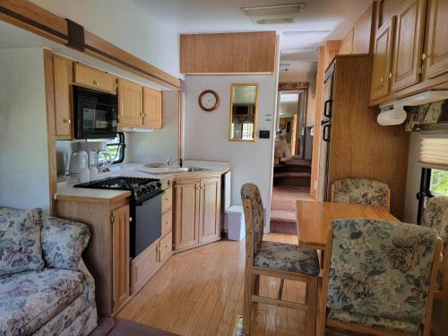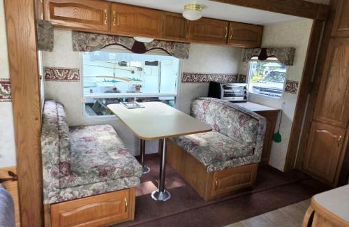Offering a terrace, Camping Beaurivage 1- Pret à camper entièrement équipée pour 6 personnes offers accommodations in Routhierville. This property offers access to a patio, mini-golf, and free Wifi. The air-conditioned campground consists of 2 bedrooms, a living room, a fully equipped kitchen with an oven and a coffee machine, and 1 bathroom with a bath and a shower. Towels and bed linen are featured in the campground. The property has an outdoor dining area.