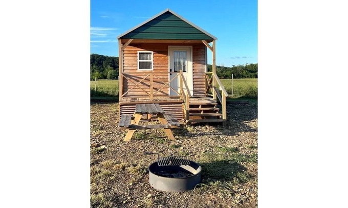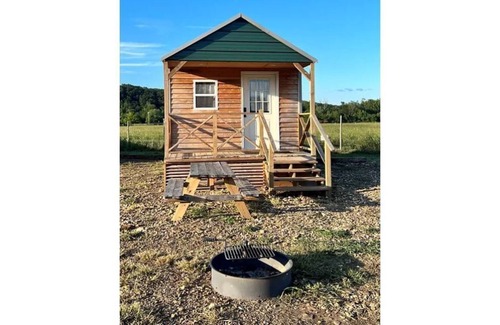 This cozy one room cabin has 2 Twin XL bunk beds (4 mattresses), table w/ 4 chairs, microwave, coffee pot, mini fridge, shower/toilet/sink, Mini split A/C & Heat, Electric space heater, and tankless hot water heater for endless hot showers! Each cabin has a picnic table and fire ring with cooking grate outside. These are camping cabins so you'll need to bring your own towels, linens, and cooking supplies just as if you were camping. Toilet paper and coffee filters are provided. Ice and firewood are for sale onsite.