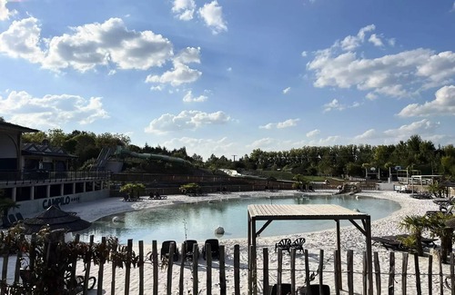 Residence: Nestled in a forest of fir trees and a populace serving as a crib to two large ponds, the Campilo campsite**** makes you the promise of a wonderful holiday.On site you can enjoy a beautiful aquatic space Composed of a lagoon-beach: 900 m2 of water and its 1000 m2 of white sand and 2 giant slides of 78 m and 63 m long and also a covered and heated swimming pool, dry paddling pool equipped with jets and water sets.Because the holidays are synonymous with fun, the campsite offers several animations during the July and August school holidays.And in the hands of qualified and safe animators, your children will feel free and autonomous for a few hours.For this, Campilo facilitates your holidays by offering you 2children's clubs intended for each age: The kids club from 4 to 10 years old and the teen club from 11 to 17.And for even more entertainers, you will have at your disposal several leisure activities and facilities : fishing in the pond, children's playground, mini golf, multisports field (basket, football, handball, volleyball), table tennis table, petanque field.To facilitate the organization of your stay the campsite has a set ofservices Four stars. When you arrive, you will find the bar, snacks, grocery store, etc. And also on site: Wifi, terminal and charging for electric vehicles, laundry, and various rentals.Please note: some services and activities may be extra* In no case shall accommodation be occupied beyond their maximum capacity. It is recalled that a child of any age (0 months to 17 years) is considered to be fully employed
