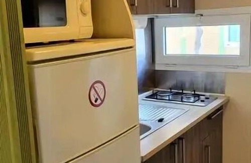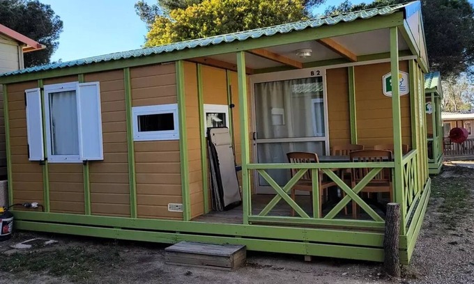 Accommodation: Chalet 4 people comprising 2 separate bedrooms, living room , fitted kitchen (fridge , plate 2 lights , microwave, etc.), bathroom with toilet , covered terrace, garden furniture.Possibility to rent a removable air conditioning on request ( 70€ / week ) and depending on the stock available